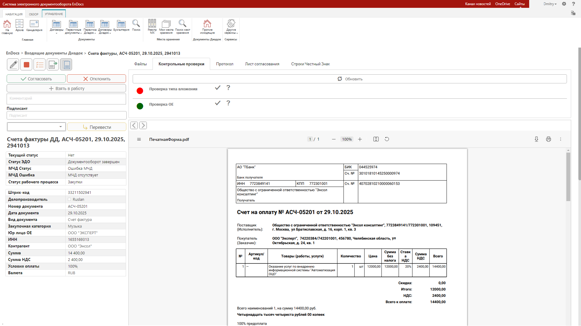 контроль наличия всех документов по договору (акт, счёт и пр.) - Учет скан копий оригиналов